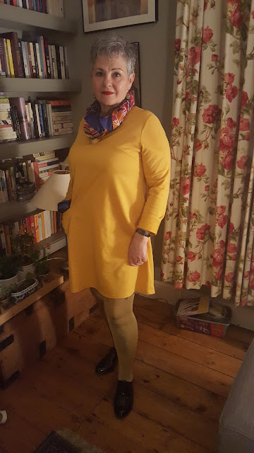After a monochromatic look last week I wanted more colour on Monday.  Plus, it's springtime! I bought this yellow dress from E bay before Christmas. It looked asymmetric in the photos on line- it isn't - but I do like the colour. I used to really dislike yellow and for some reason I now love it!