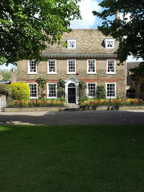 I am standing outside Oliver Cromwell's house. He crops up a lot in these parts; he went to school in Huntingdon where we visited a few months back here.