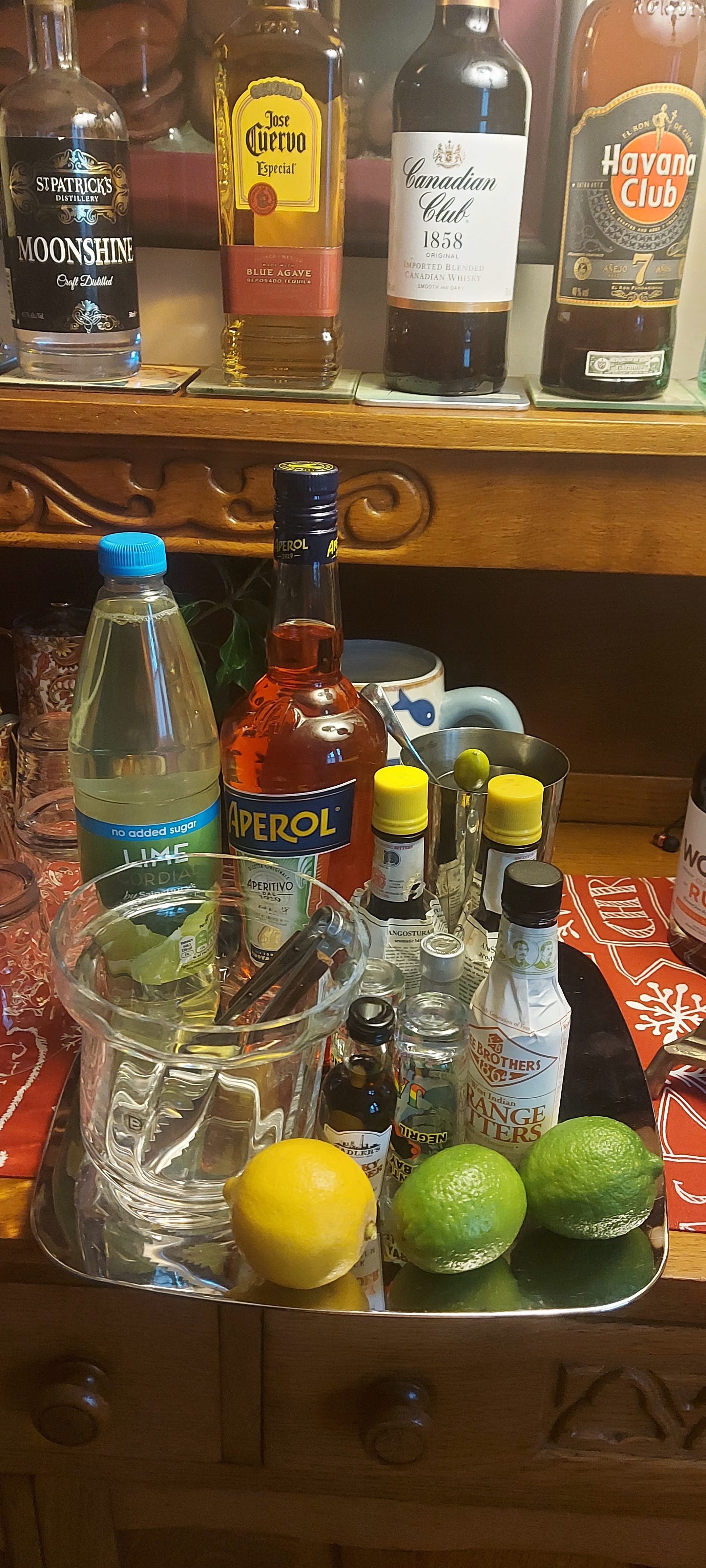 Grandson's cocktail making kit. He also brings various bottles of his own...