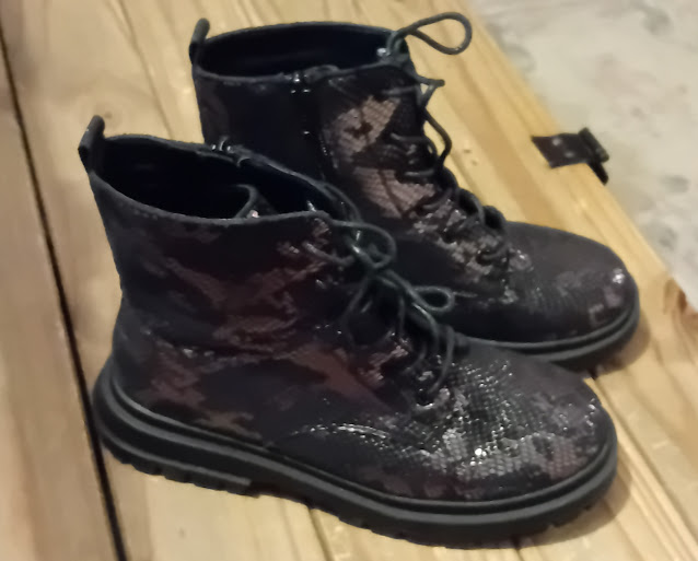 From the pool I went home to hang up some washing and then went into town to run some errands going to the chemist to pick up my repeat prescription; to Savers and to buy myself some navy boots (above) I'd spotted when I was having my eyebrows done last week. One new pair of boots in and one old pair of boots into the donations bag. I could have asked for the boots as a Christmas present but it was easier to buy them myself! Then back home to sort out the fire and make dinner. I didn't have to pick grandson up in the evening - it was his day off.